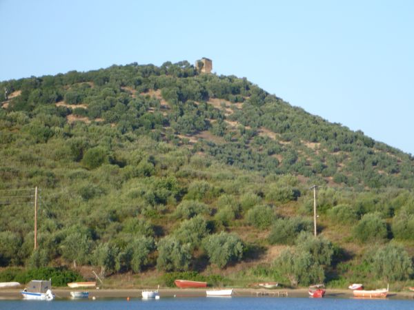 Nach einigen Tagen Faulenzen muß es dann doch mal langsam weiter gehen raus zu den Inseln. Nicht ohne einen Zwischenstop in der Ormous Loutro auf der Westseite des Golfs von Volos einzulegen. Eigentlich hatte ich vor, den dort stehenden Turm zu besichtigen, von dem angeblich Achill seinerzeit nach Troja aufbrach. Das späte Ankommen und der für den frühen morgen versprochene passende Wind lassen es dann beim Bewundern aus der Ferne (man ist ja nie um Ausreden für die Vermeidung unnötiger Höhenmeter verlegen