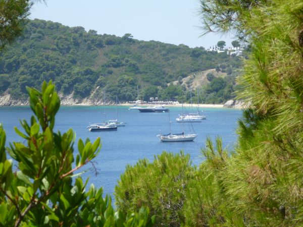 Also wieder einmal raus aus dem Golf und Richtung Skiathos. Dort ankern wir in der inzwischen deutlich belebteren Bucht Koukounaries im Süden: