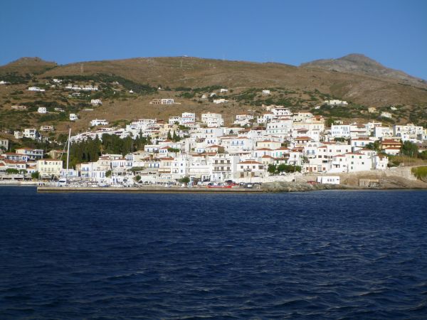 Im Vergleich zu den bewaldeten Sporaden merkt man hier sofort, daß man sich nun in den Kykladen befindet, mit der typischen weißen Würfelhausarchitektur der zentralen Ägäis: