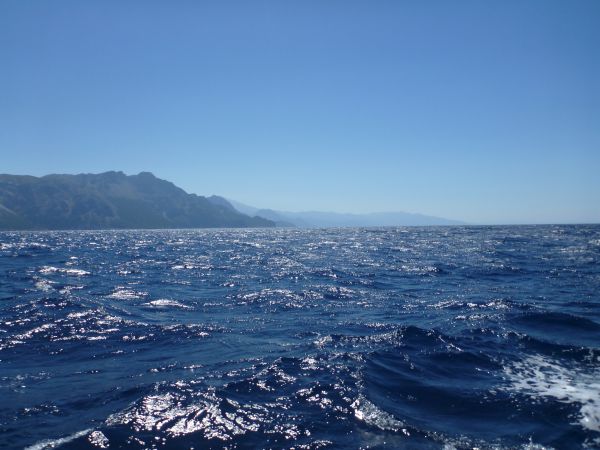 Nach einer Woche in Votsi geht es dann doch weiter. Die knapp 50 sm bis Petries, einem der drei Rastplätze auf der sonst kargen Ostseite von Euböa ziehensich wieder, auch wenn es diesmal - im Gegensatz zum Hinweg - unter Segeln klappt. Zwischendurch gibt es "Shades of Blue":