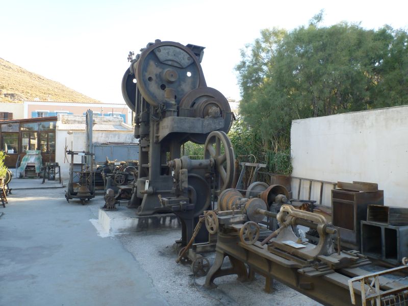 Was man hier sieht ist übrigens kein Schrottplatz sondern ein Freilichtmuseum im griechischen Stil. Die Maschinen stammen aus einer alten Email-Fabrik, die die Deutschen in den 50er Jahren nach Kea geliefert hatten und die hier lange Jahre produzierte.
