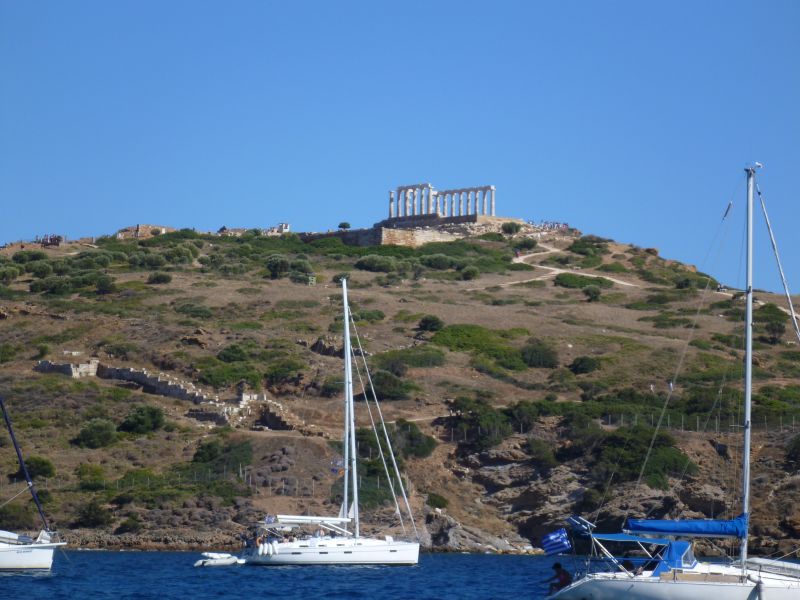 In einer Bucht unter dem Kap Ak Sounion fällt erneut der Anker. Der vom versprochenen Nord zu West mutierte bläst die Wellen in die Bucht hinein und es wird eine unruhige Nacht. Die Strandurlauber, die hier wohl Massentierhaltung betreiben, stört es nicht: